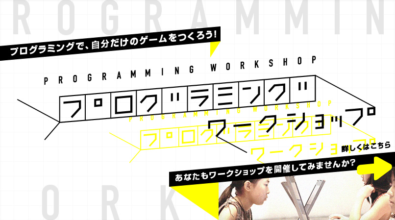 このワークショップでは、ゲームづくりの「しくみ」を学んで、自分だけのゲームをつくります。「ゲームで遊ぶ」から「遊ぶゲームをつくる」ことにチャレンジしよう!