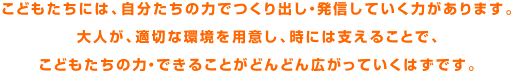 こどもたちは、自分で考えアイディアを形にしていく本質的な力を身に付けていくはずです。