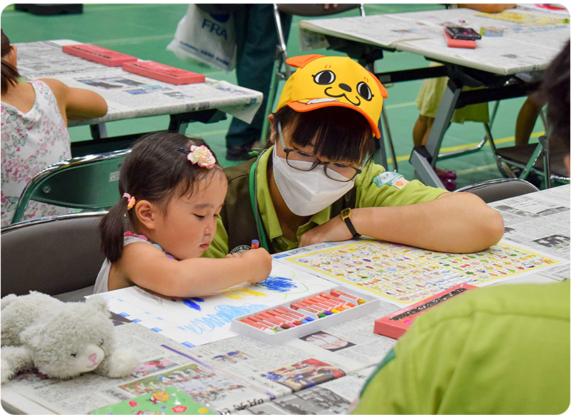 土曜日は雨がぱらつくなど、ちょっと不安なお天気でしたが、2日間ともたくさんのキッズの来場で賑やかなイベントとなりました。(イベント開始直前には、約300人の列が!!)