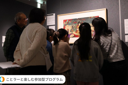 ことラーと一緒にアート作品の世界を旅するプログラム。今回は、川崎浮世絵ギャラリーの「浮世絵スター誕生展」へ出かけます。開館前の時間を貸し切り、子どもだけの特別なミュージアム体験です。最後は鑑賞の思い出を缶バッチにして持ち帰ります。初めてのミュージアム体験にもおすすめ!