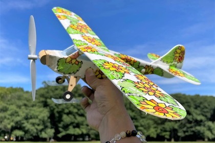 工作④ ゴム動力で大空を飛ぶデコプレーンを作ろう!【軽くて柔らかい素材を扱いやや難度が高い】◆迫力のある大きな工作