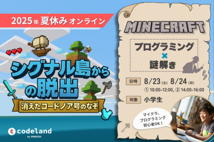 - ①マイクラ×プログラミング!小学生向け謎解きオンラインイベント ②2日でWebサイト制作!夏こそ、脱プログラミング初心者