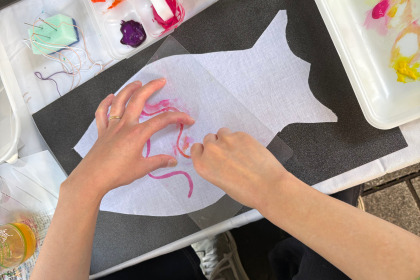 絵と布とぬいぐるみ作りをしながら、