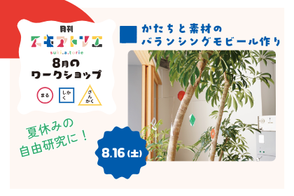 形の関係、大きさの関係、素材の関係、重さの関係、手で触れてバランスを考えて…五感が刺激される造形ワークショップです♪