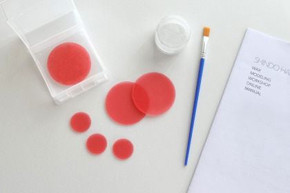 ワークショップ開催2日前までにキットをお届けします(制作用ワックス3点、パウダー、小筆、マニュアルブック、オーダーシート、返送用ラベル)。3. ワークショップ当日