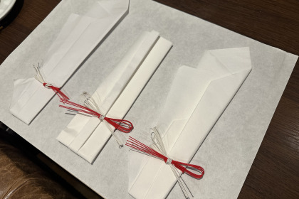 折形とは600年以上の歴史をもつ武家社会の礼法の1つで、四季折々の行事や部屋のしつらえ、贈答など心をこめて何かを贈ったり飾るときなどに「和紙」や「水引き」を使い、様々な折り方や結び方で意味合いやデザインを表現する日本古来の格式高い包み方であり、日本独自の由緒正しい伝統文化・伝統工芸技術になります。