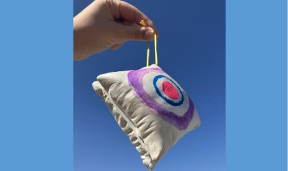 小さなクッションの中に「今は考えないようにしたいこと」をあらわすものをしまい、まわりに色を塗ったり模様を描いたりして飾りを作ります。完成したものは、展覧会期間中会場にて展示され、会期終了後に直接引取りもしくは着払いにて返却予定です。