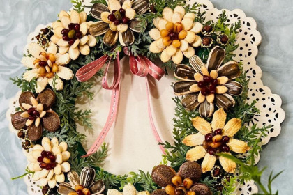 - 1.材料の準備と下処理(約20分):使用する種・ヘタの選び方、洗浄・乾燥など 2.デザインの決め方(約15分):リースのベース選び、バランスよく配置するコツ 3.リースの組み立て(約40分):種やヘタを固定する方法・接着のコツ 4.仕上げとアレンジ(約20分):リボンやドライフラワーでアクセントをつける 5.完成&アフターフォロー:作品の飾り方・受講者限定の質問・アドバイス対応