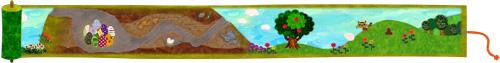 「えまきもん」とはページのない、絵巻物のようなデジタルえほんです。