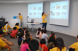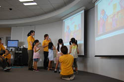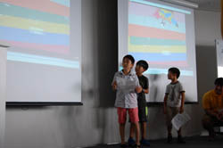 完成した作品は、映画館のように上映をして、みんなで鑑賞しました。 |