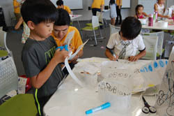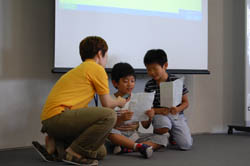 どんな作品をつくろうかな!?グループのみんなといっしょに、作品のストーリーやキャラクターを考えます。 |