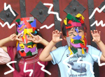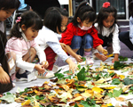 「ヒカリでつくる」 みんなで協力して、会場中をステンドグラスのような不思議なセカイにしてみたり、ちょっとヘンテコな影絵遊びをしてみたり・・・、光で絵を描いてみたり・・・。