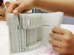 「カラークリップの造形」 たくさんの数のクリップを数えて、つなげて、協力もして・・・ どんな空間がうまれるのかな?