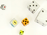 「さいころ×さいころ」 さいころってなんだかおもしろい! しかくい箱に、まるの数。 ころころころがして、どんなことができるかな?