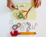 ストローを曲げてつなげて、いろいろなかたちをつくってみよう。
