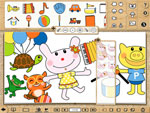 いろいろなキャラクターやアイテムをならべて、おはなしを考えます。