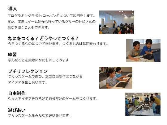 ラボinロッポンギでは、実際にゲームを作っている会社であるグリー株式会社のご協力をいただき、運営しております。