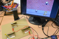 はんだ付けを不要にして電子工作をもっと身近にしてくれる「ブレッドボード」、そしてみんなおなじみ、誰でもプログラミングが出来ちゃうScratch、これらを使って、針金に触れるとアクションが起こるオリジナルゲームを作ります。