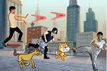 子ども向けプログラミング「Scratch(スクラッチ)」の基本的な操作を学んだあと、kinectと接続して体で操作できるオリジナルゲームを作りました。