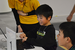 最後はみんなの作品で遊ぶ時間も設けました。今回のゲームは友だちのゲーム結果や遊んだ記録が残っていくので様々な記録に挑戦しながら、また発表の後という事もあり、制作者に質問したり解説してもらいながら夢中になって遊んでいました。