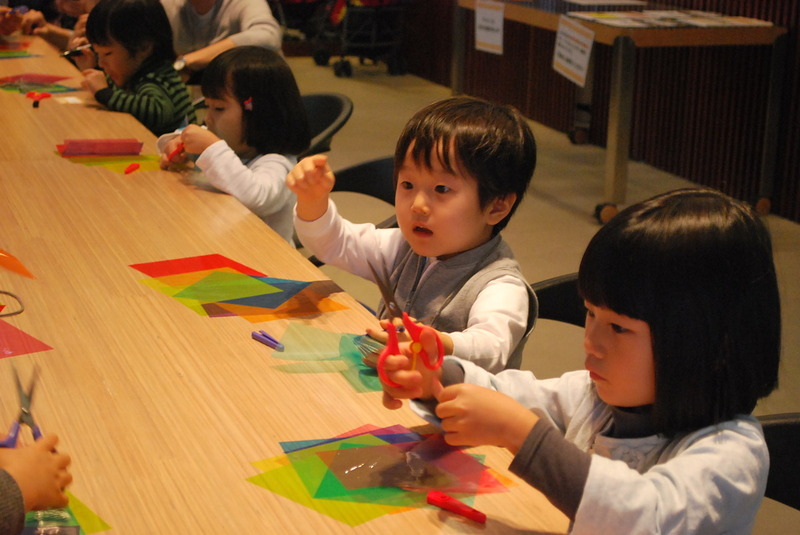 みんなで協力して、会場中をステンドグラスのような不思議なセカイにしてみたり、ちょっとヘンテコな影絵遊びをしてみたり・・・、