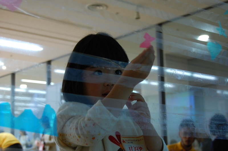 みんなで協力して、会場中をステンドグラスのような不思議なセカイにしてみたり、ちょっとヘンテコな影絵遊びをしてみたり・・・、はたまた、デジタル機材をつかって、不思議なアニメをつくったり・・・。