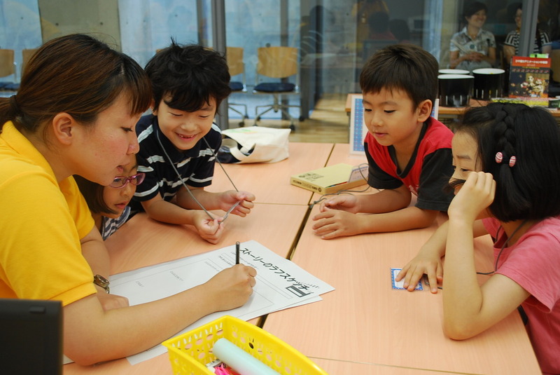 ![]() 「新しい生物」 制作:東京チーム お金がない博士が助手を雇い、研究をして生物合成マシーンを発明します。すてきな生物がたくさんでき、博士の借金も無事なくなります |
