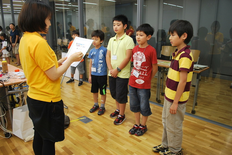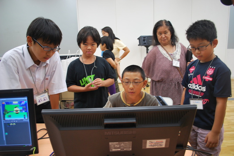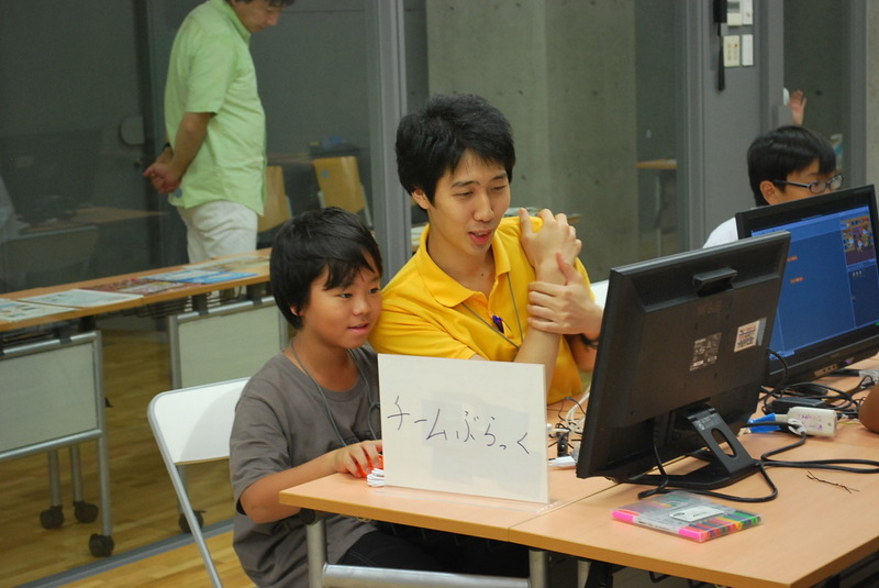 | ●ミッチェル・レズニック教授と対面! ―講演のため来日されていたプログラミング教育の第一人者、米MITメディアラボのミッチェル・レズニック教授がワークショップにいらっしゃいました。プログラミングを使ってどんなことがしたい? Scratchの開発者から直々にさまざまな質問やアドバイスを頂き、少し緊張気味です。 |