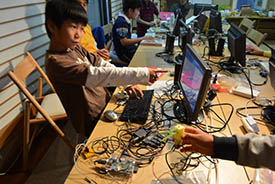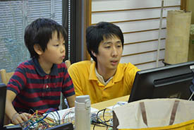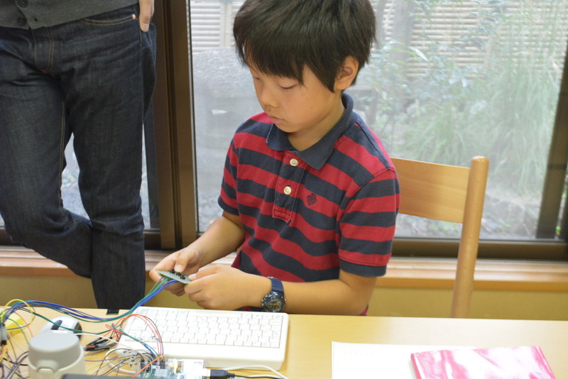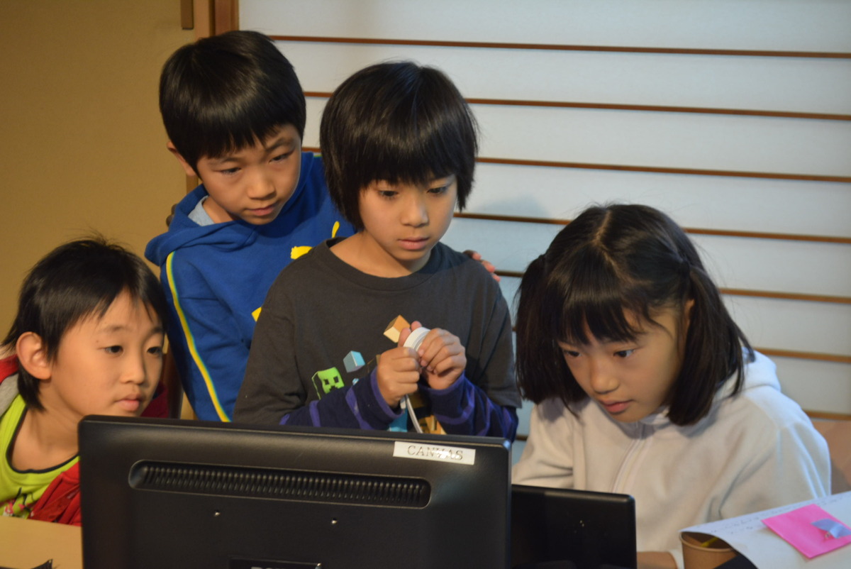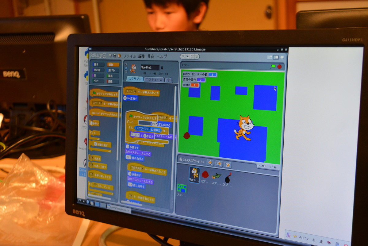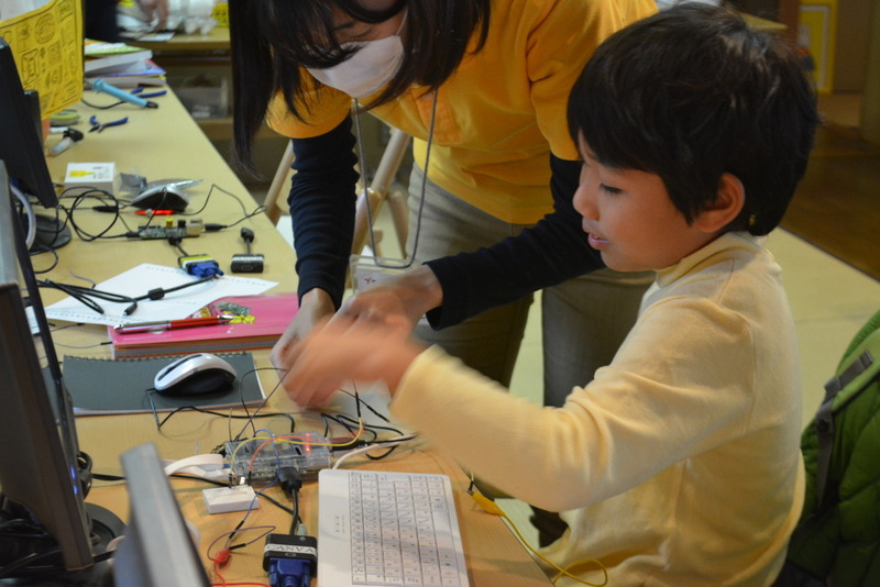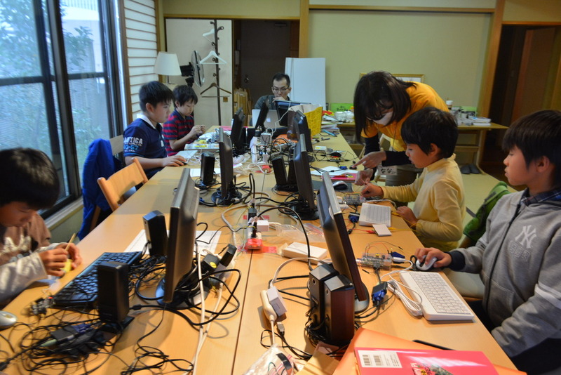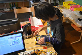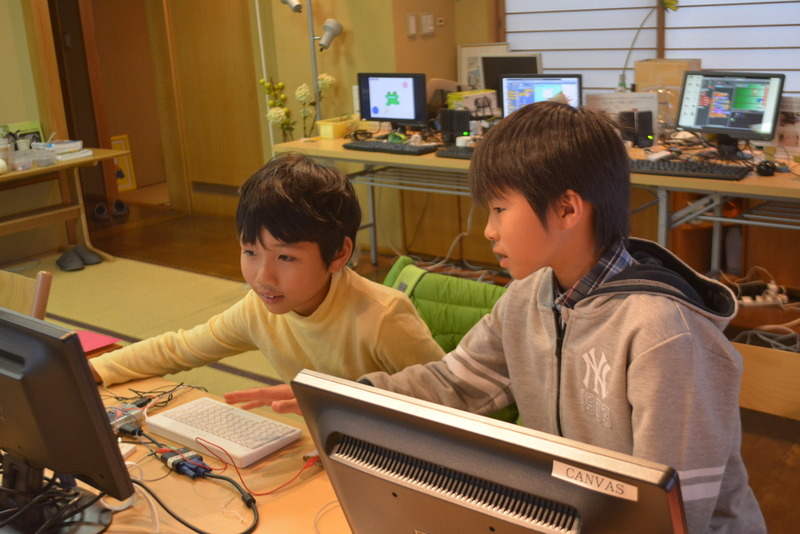 この日から新たしくきた子、前回からきた子はラズベリーパイでどんなことができるかを試しながら、モーターを動かした作品づくりをしたい、など少しずつ目標をつくっていけていました。 はじめてのハンダ付けが上手にできた子もうれしそうに終わったあとおうちの人にお話しをしていました。おうちでつくってきたスクラッチ2.0の作品を,ラズパイで使えるように1.4に移行することも自分の作品の大切な一部なので、めんどくさい~と言いながらも一生懸命集中して取り組んでいました。 わからないところはお友達と一緒に協力しながら、楽しく、でも真剣な表情を見せてくれるアカサカのこどもたち。みんなの「できた!」という達成感でいっぱいの声を聞くのが楽しみです。