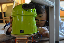 作品の「きほんのかたち」は人それぞれ。 ロボットのうごきを重視していたり、ラズベリーパイのモニターを小さいものにしたり、マインクラフト×スクラッチでできるタワーの見ためだったり、ゲームの操作の仕方やストーリーだったり。 この日は「きほんのかたち」のひとつ、ロボットの目をLEDで光らせることを画面のボタンで制御することができた子がいました。はじめは片方の目しかつかなかったけれど、その後自分でどこが間違っているのかを調べて、ついに両目を光らせることに成功!「できたーーー!」ととても嬉しそうに、教室の中でロボットを動かして試していました。自分ががんばってできた作品には、より愛着がわいてきます。