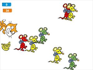 このゲームは、ネコを上下の矢印で操作しながら、ついてくるバナナを迫るネズミから守るゲームです。音センサーを使って大きな音を出すとビームを出せるようにもなているので、ネズミにぶつからないようにうまく音を使って攻撃する必要があります。迫るネズミも色によってスピードが違い、ゲームが進んでいくとスピードの速いネズミが現れて難易度を上げるなど、ゲームバランスも考えてつくったことも工夫したところと語ってくれました。 |