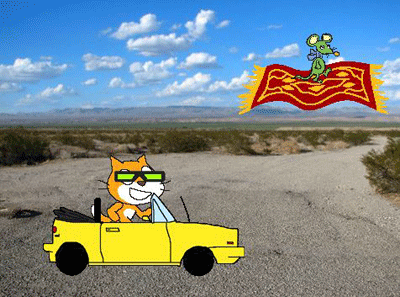 | ●空飛ぶじゅうたんと車で追いかけるネコ |
