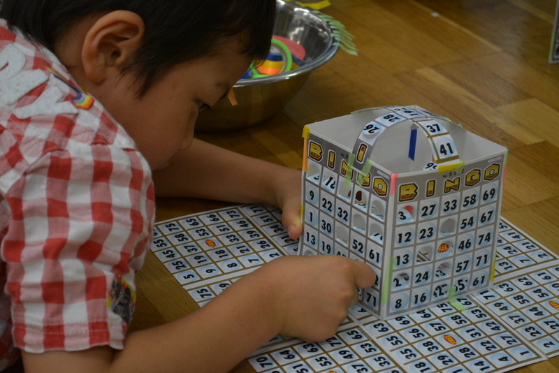 9月21日の研究所東大幼児クラスは、ビンゴをつかった造形プログラム。