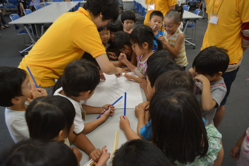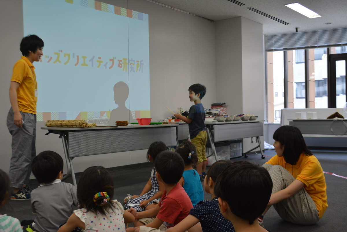 8月9日の研究所明治幼児クラスは、身近にあるものでさまざまな音を作りました。
