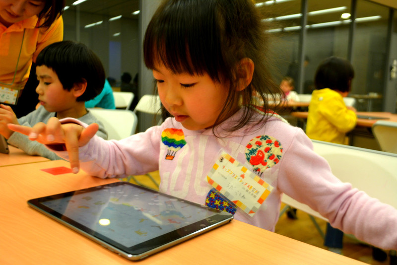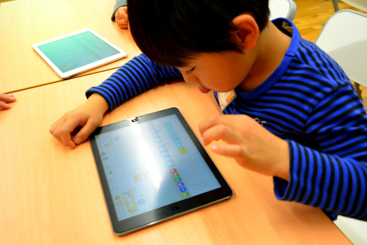 誇らしげにiPadの画面を見せながら説明しているキッズの姿や、