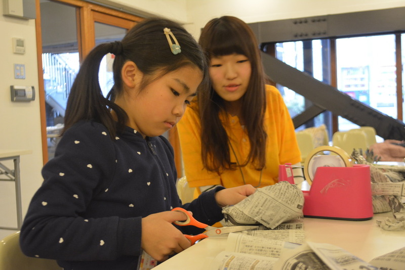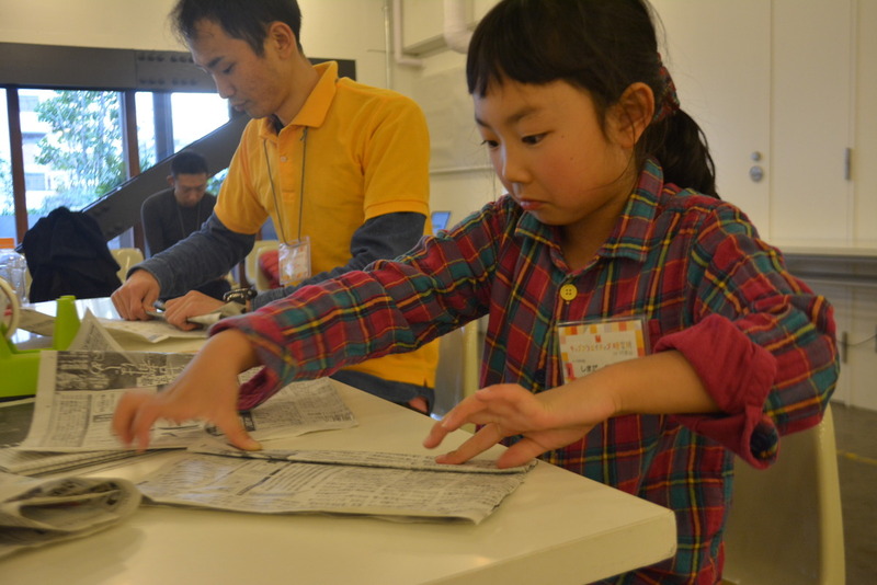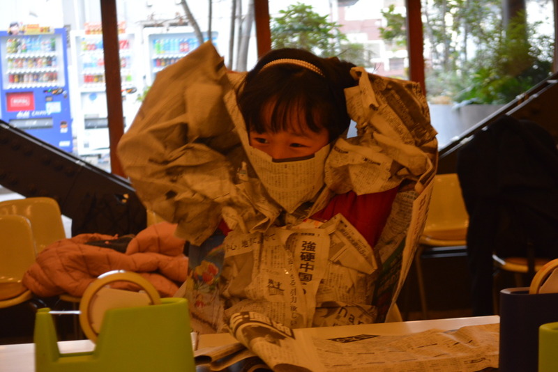最後はいよいよ自分の熱を守るためのポカポカアイテムを、新聞紙で作ります。