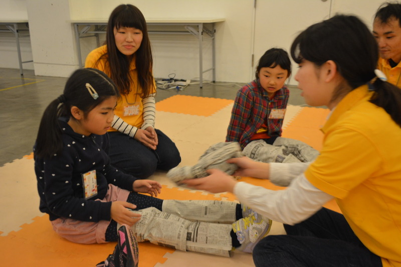 新聞紙を工夫してつかってみたり、自分たちの体の熱を利用したり、