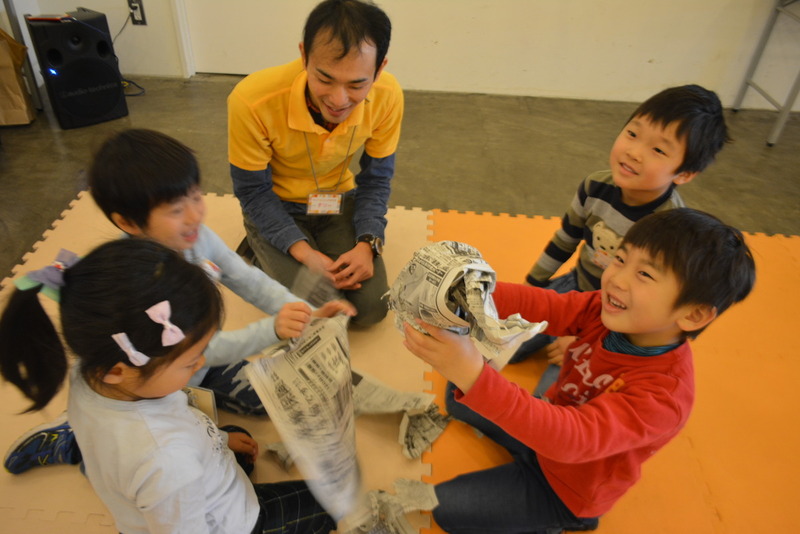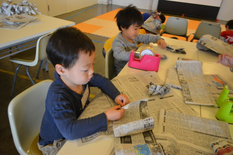 新聞紙を工夫してつかってみたり、自分たちの体の熱を利用したり、