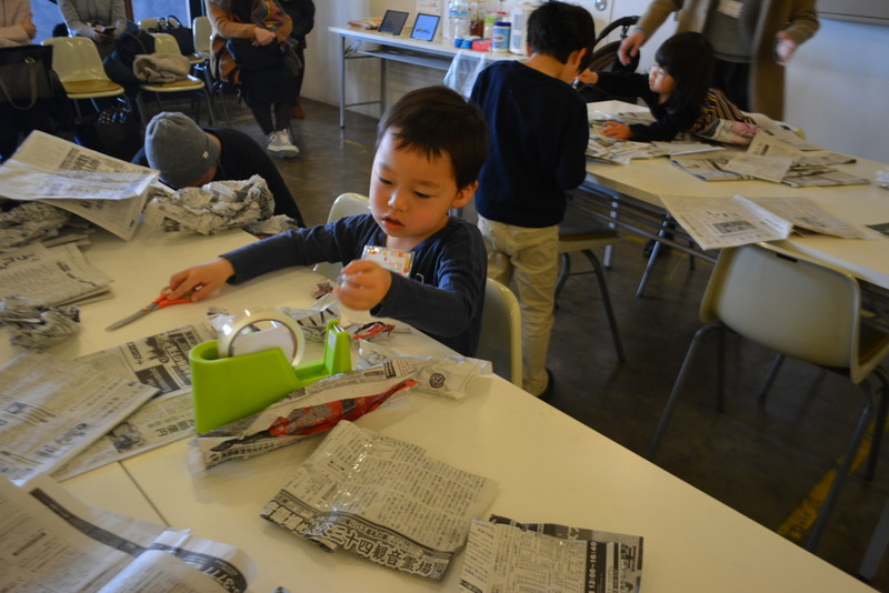 最後はいよいよ自分の熱を守るためのポカポカアイテムを、新聞紙で作ります。