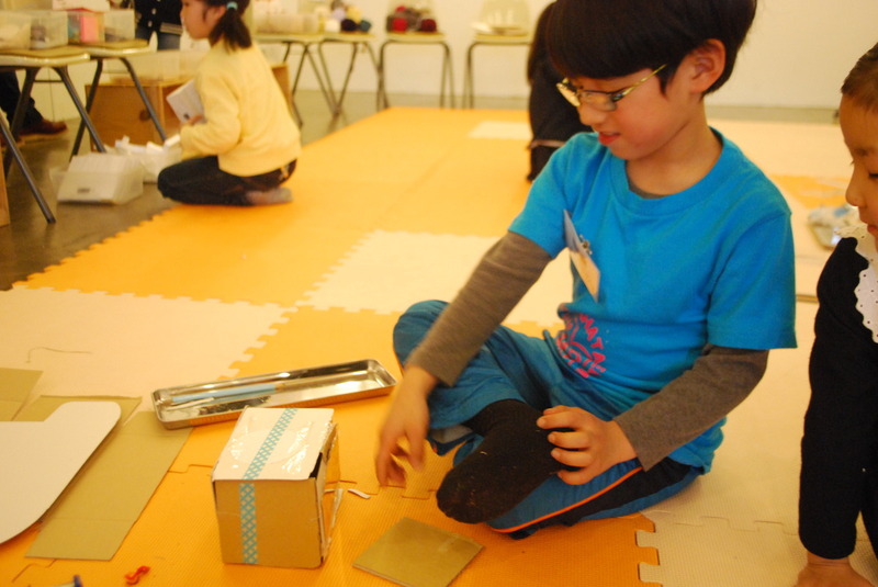 こどもだけのミュージアムは、会場にあるたくさんの素材・道具を自由に使い