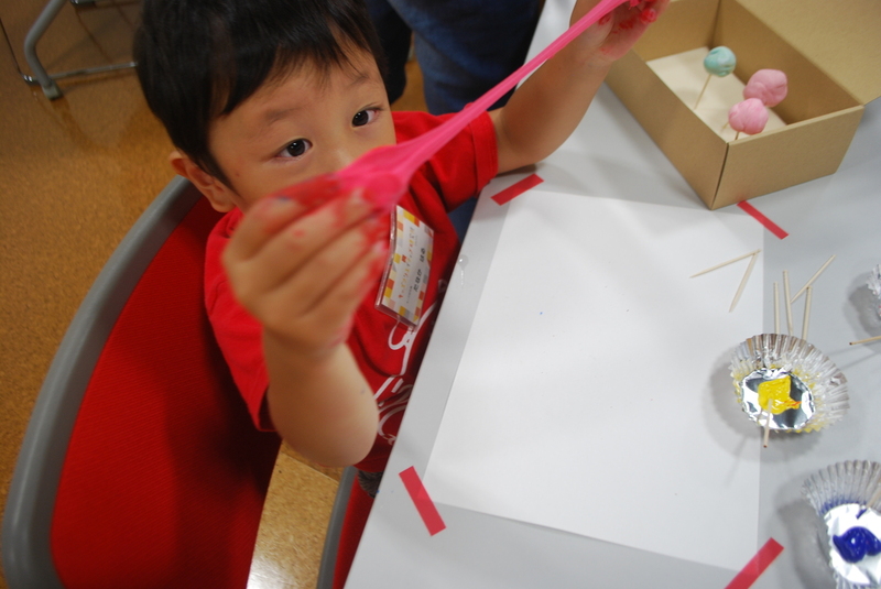 紙粘土と3色の絵の具をつかって、