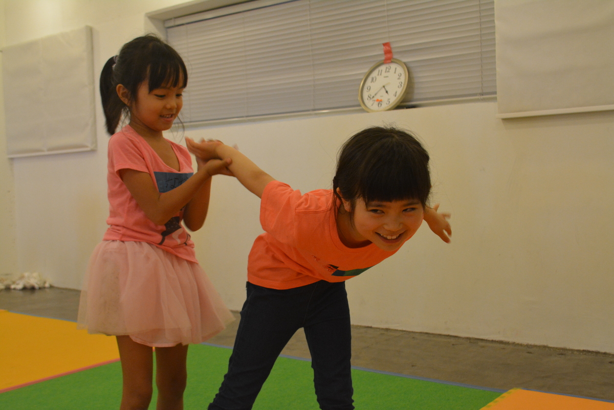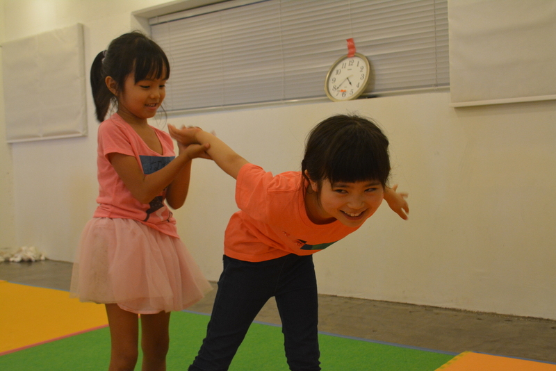 ゴロゴロ転がったり、飛行機になって歩いたり、