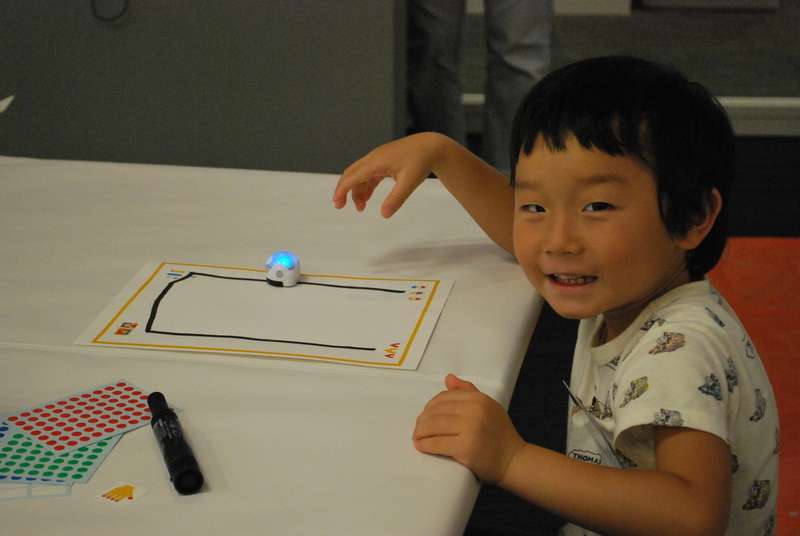 Ozobotが線の上を走りだすとみんな笑顔に。