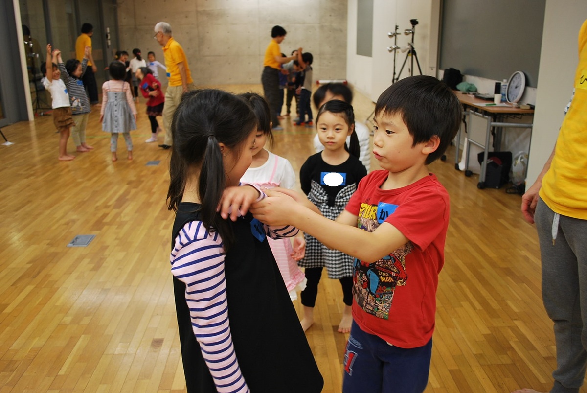 からだで様々な形をつくり、前の人から次の人へ、リレーをするようにつないでいく、