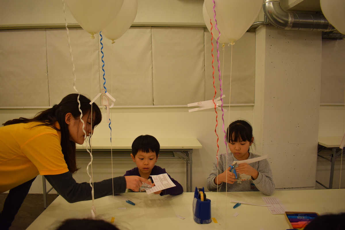 最後はみんなで風船旅行。高さにこだわった風船や、モチーフのつける位置や数を工夫した風船。それぞれに個性が生まれた風船が並んでいました。