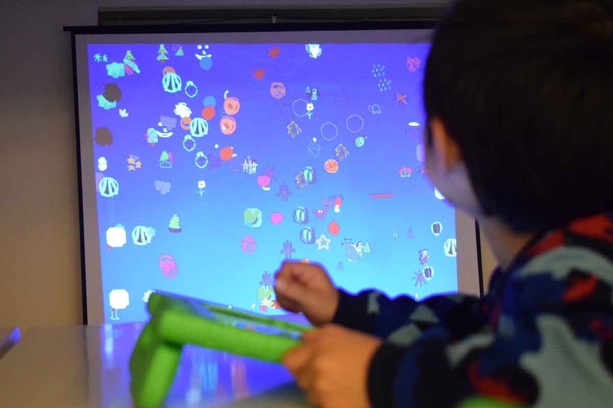 自分のipadだけで絵が動いているのも面白いけれど、みんなで一つの世界を作ってみるのも面白い。