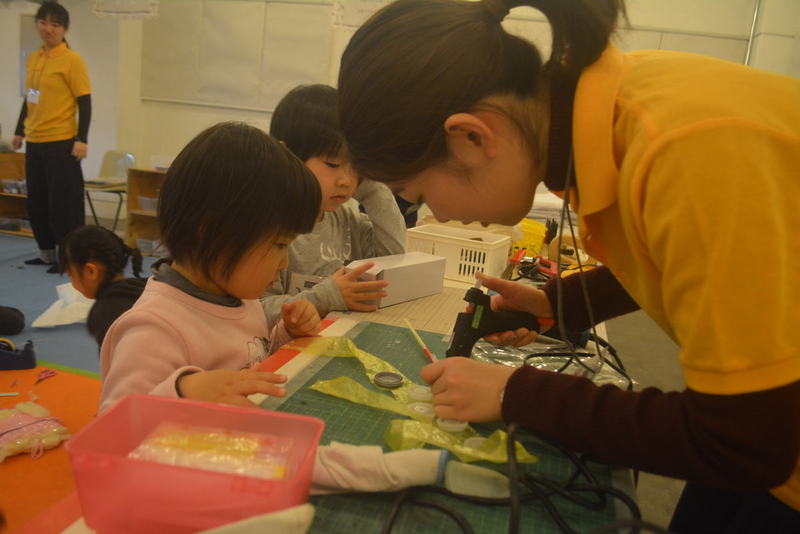 素材を通してつくりたいものが湧いてくるだけでなく、道具を見て使い方を知ったときに、つくりたいものや素材が決まる子がいました。