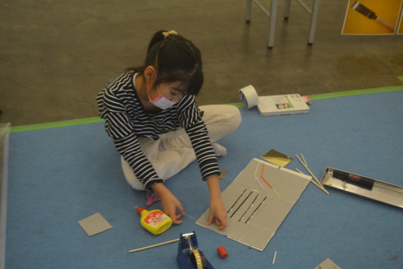 小学校で使ったことのある素材など、見慣れたものを最初に手に取る子が多いように感じました。今回は工作用紙を用いた迷路をつくる子が多かったのですが、だんだん作っていくうちにいろんな素材にもチャレンジしていました。