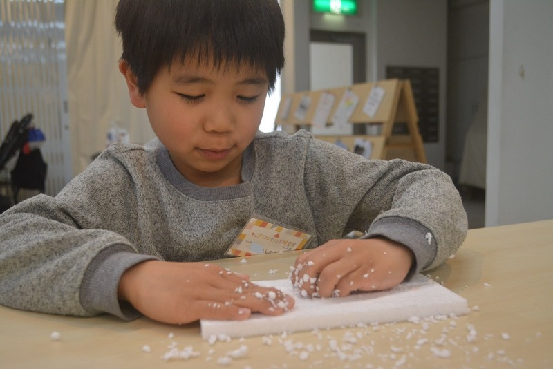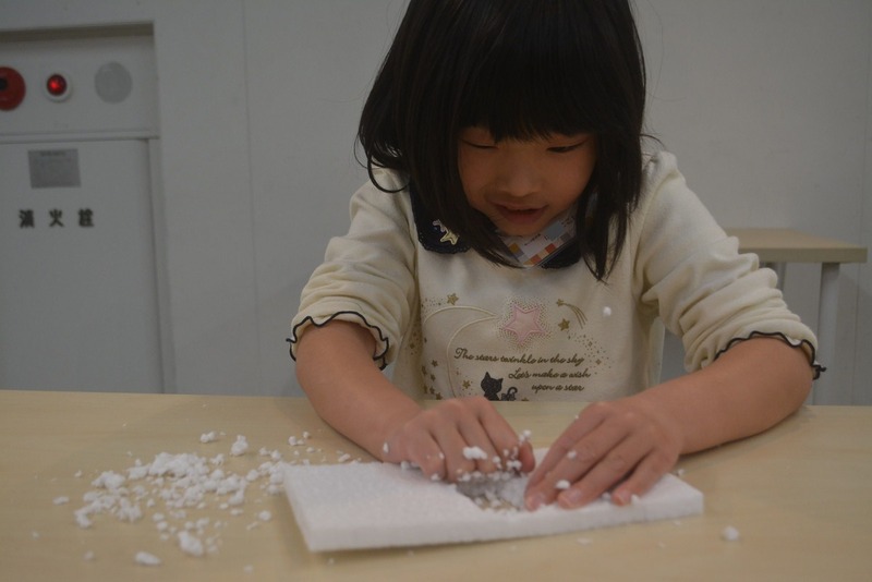 にせものおにぎりづくりに使う材料は発泡スチロール。