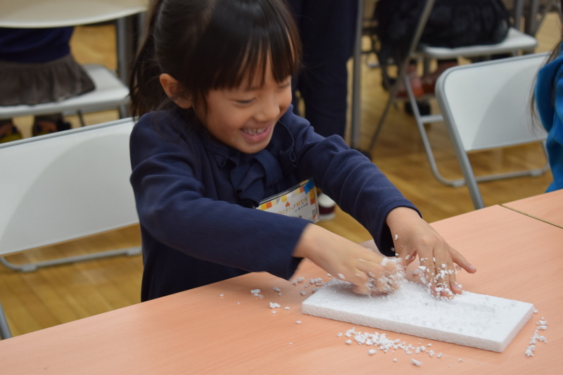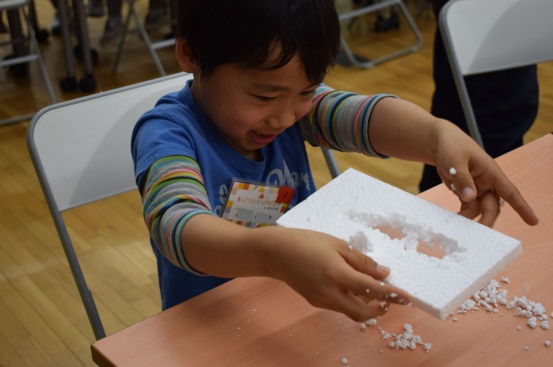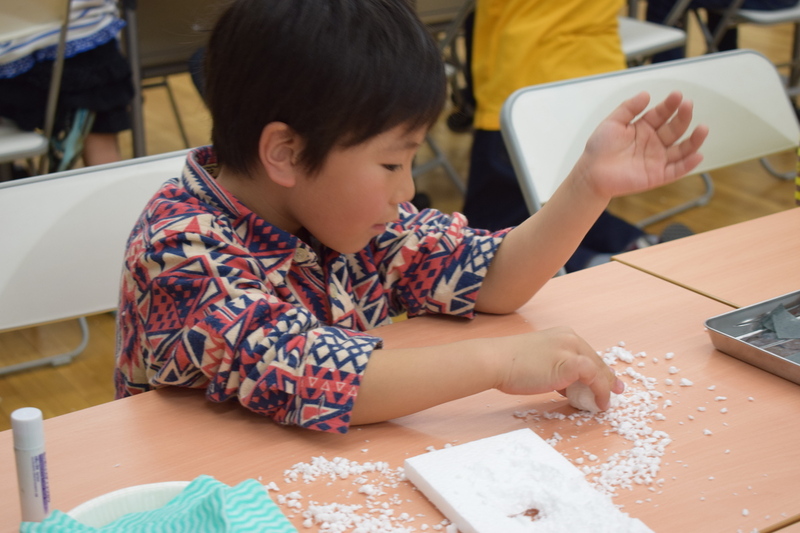 にせものおにぎりづくりに使う材料は発泡スチロール。